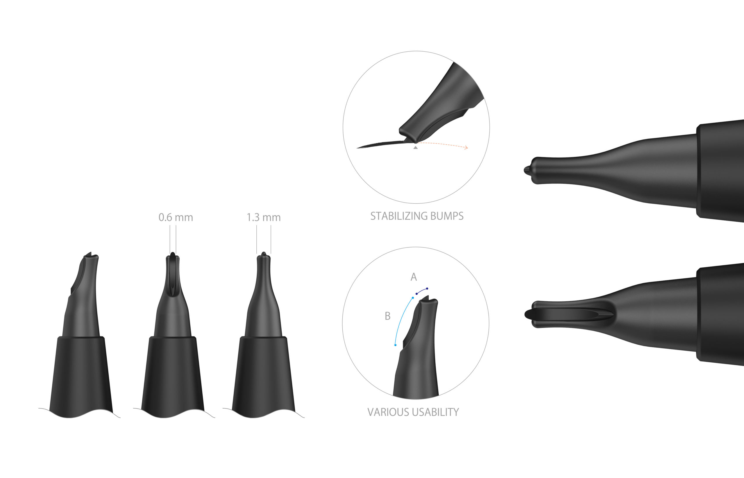 Along with the market demands for new products & experiences, the Eyeliner package for Maybelline was designed with the brand identity which is originally from a skyscraper of New York City. As well, the micro-sized tip for a better experience in the use was developed. In order to have proper guidance while users are in makeup, the soft stabilizing bumps besides the tip give gentle touch-feeling so that users can draw along. Plus, the curved tip can create different gestures in the use.