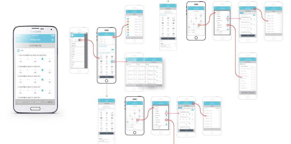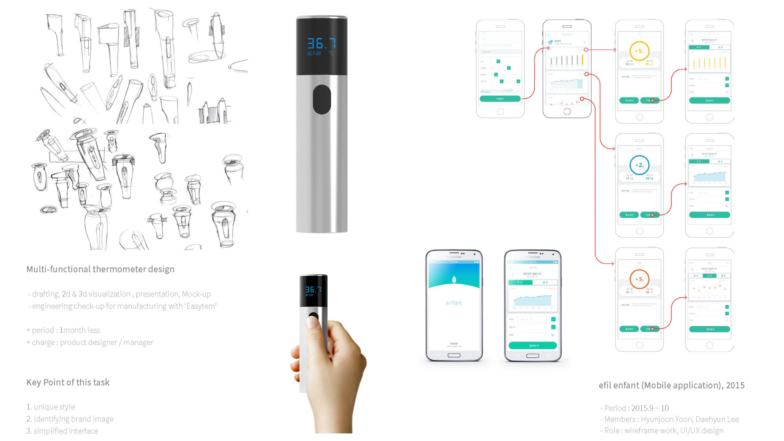 In order to create health checking products physically & digitally that users can keep collecting & tracking their health with smart devices and apps, UX research & prototyping of Efil enfant for Android, were conducted, 2015.