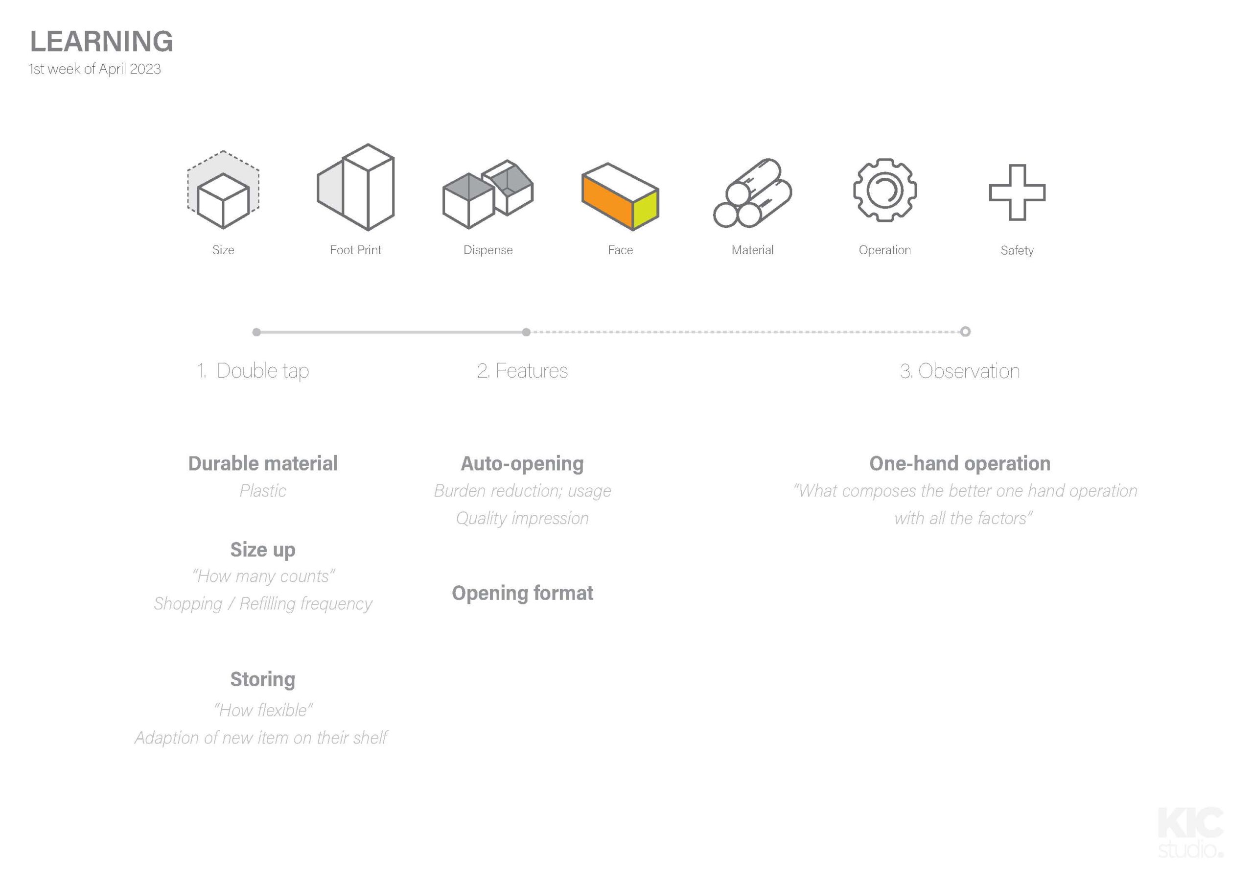 Consumer research from November’22  which started with past consumer data is renewed by more direct & intuitive design exercise, projecting consumer’s demands on the concept work and prototypes. Contents in this page are showing the latest research on March’23 that was targeting to have conclusive feedback about winning design elements with working prototypes.
